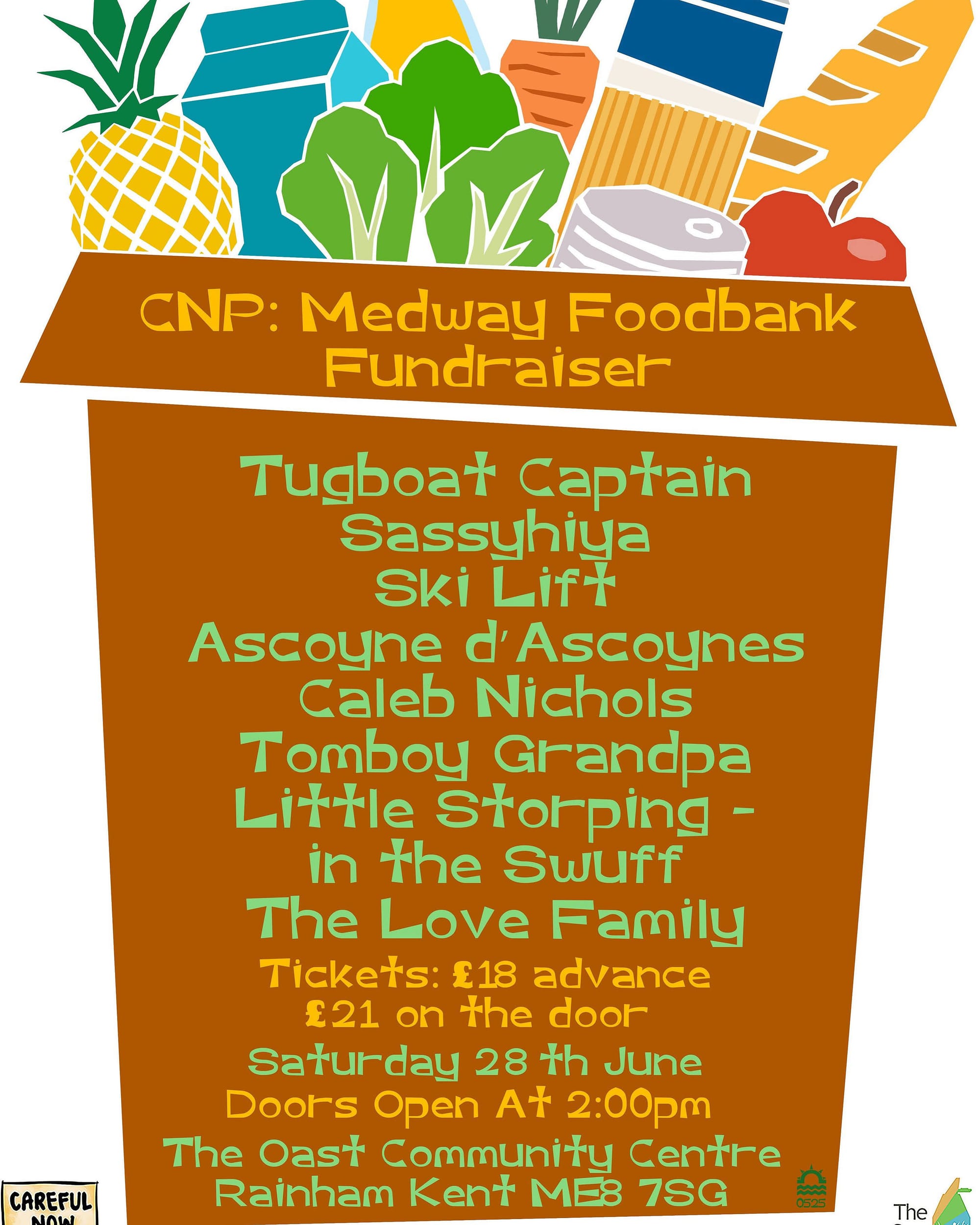 The event kicks off with The Love Family doing an acoustic set, followed Little Storping in the Swuff, which is “Dave Goggin doing his great stuff that we've had before.” They then have new band Tomboy Grandpa, “who feature people who've played for us before.” Then there is Caleb Nicholls, who has never played a Careful Now gig before. “We've not been able to work it out before with him”. Then is the all-important dinner break, “because we've been to an all-day festival and there's no time to eat,” says Colin, “but we want people to drink beer as well because that's how the Oast raise their money.” Feeding people is probably a good idea.