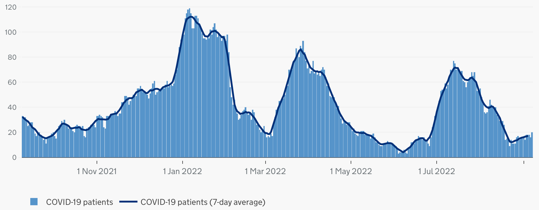 Hospitalisations: There are currently 20 patients being treated for covid in Medway Hospital, with none on a ventilator. This is up 33% on last week.