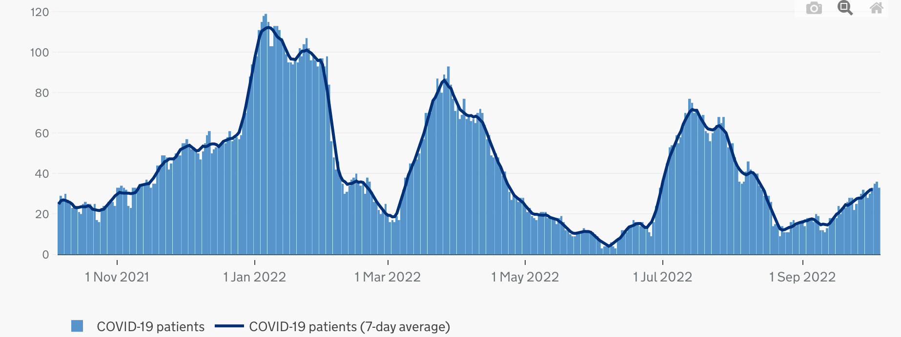 Hospitalisations: There are currently 33 patients being treated for covid in Medway Hospital, with 1 of them on a ventilator. This is up 3% from last week.