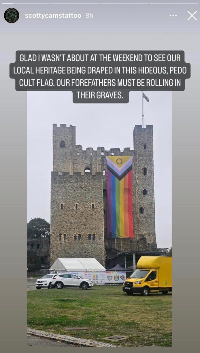 So trust one local business owner to try and ruin it for everyone by taking to Instagram to register his disgust over the Pride flag being draped from Rochester Castle. Oh, the horror.