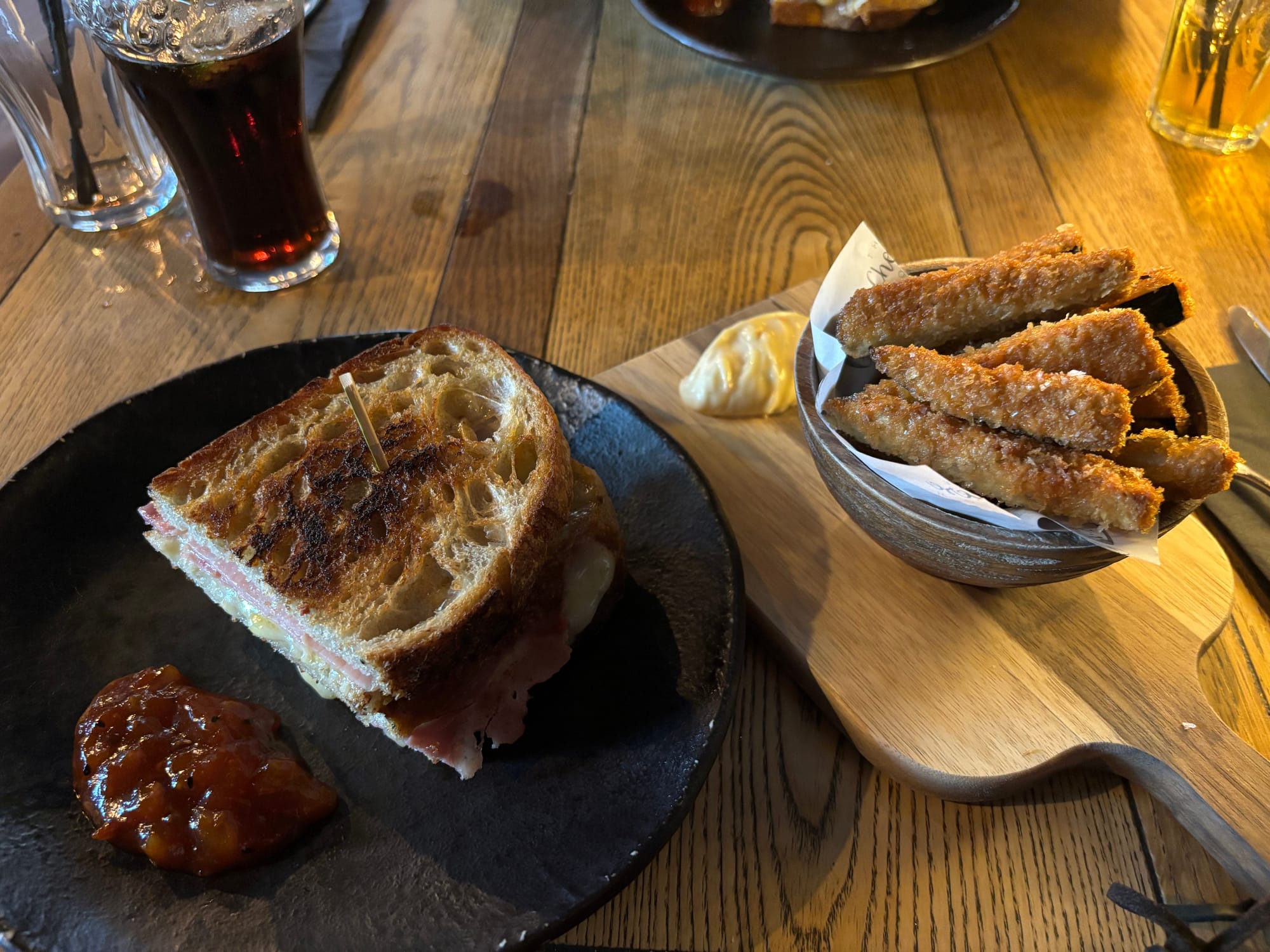 We ordered from the lunch menu and when in Rome, ordered a cheese toastie. Specifically, a ‘Smoky’ with Applewood smoked cheese, smoky Chipotle, and smoked ham. Along with triple-cooked chips and, in a fit of pique, aubergine chips, It was unreservedly delicious. It's one of the best toasties I have ever had in Rochester, which is not intended as a back handed compliment. The bread was well toasted, the cheese and ham generously portioned and full of flavour. Also, the aubergine chips were, to be clear, sublime.