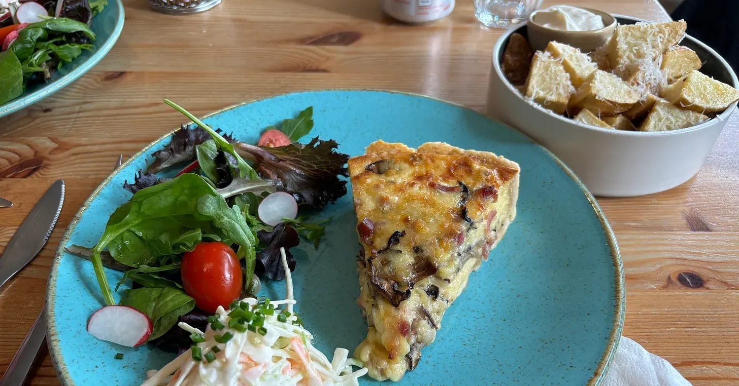 I ordered a vanilla milkshake with a piece of gammon and mushroom quiche, which came with a side salad and coleslaw. I also ordered a side of truffle and parmesan potatoes. They said it was a large sharing portion. Agree to disagree.