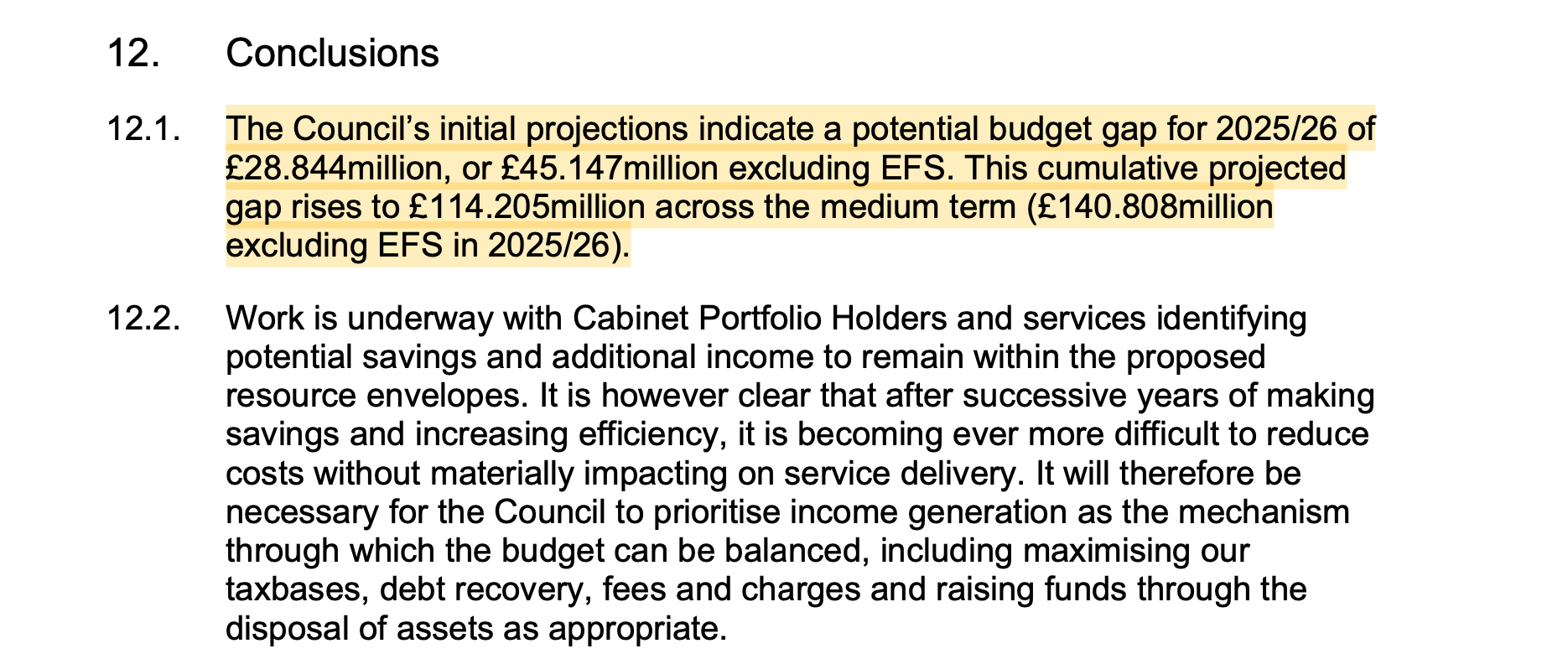 Between now and 2028, Medway Council's budget gap looks set to rise to over £140m, or, more optimistically, a mere £114m with emergency financial support.