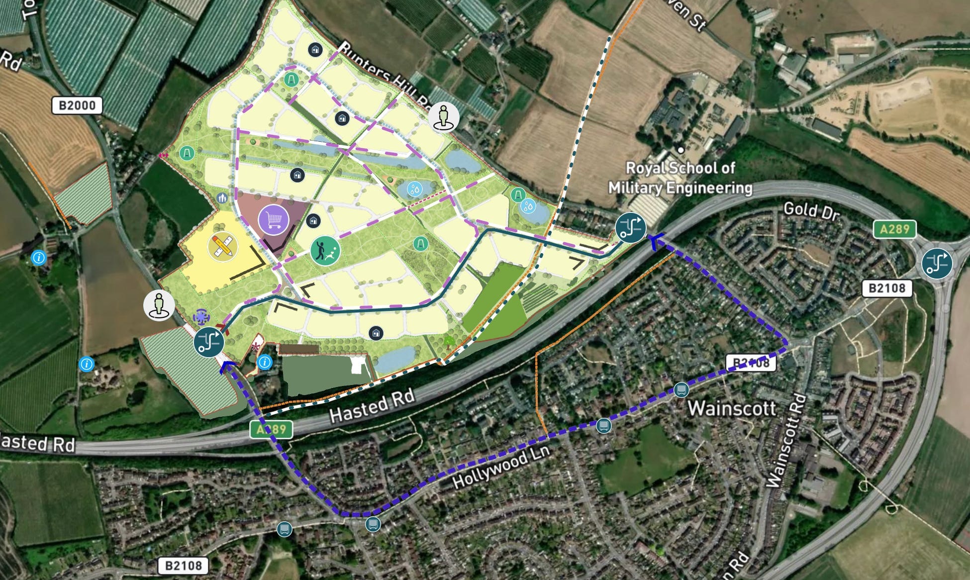 This is a significant development of an agricultural site and would represent the first large-scale extension of the area north of the A289 relief road. The plans include a retail centre, a new school, new open spaces, older person homes, and 30% affordable homes. In theory, it’s development with the facilities that often aren’t included, but some questions remain within the plans.