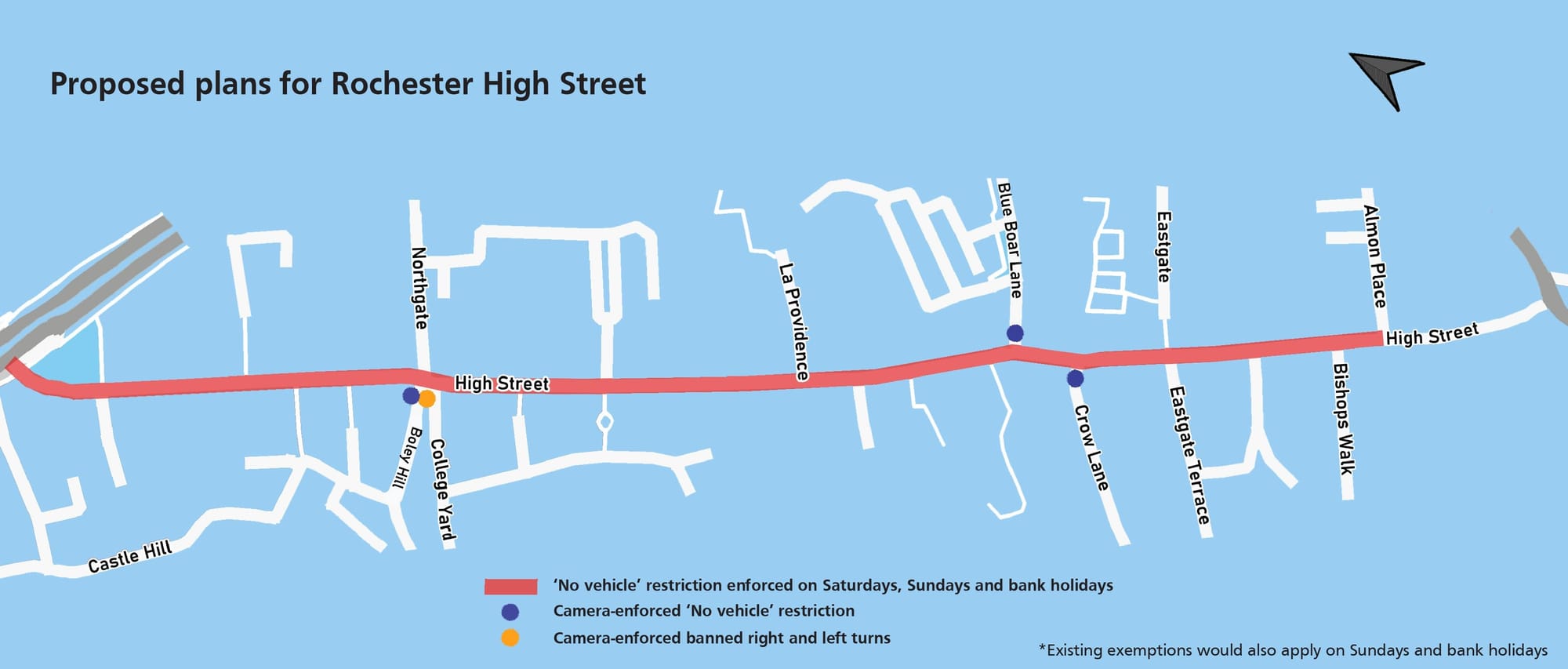 “We want people to be able to enjoy visiting Rochester, whether it’s for the fantastic range of shops, restaurants and bars or our iconic heritage sites. By proposing to extend the well established no vehicle restriction to include Sundays and bank holidays, we are looking to put pedestrians first along the high street whilst people are out and enjoying themselves across the weekend. I would encourage all residents to take a look at these proposals and make sure they have their say.”