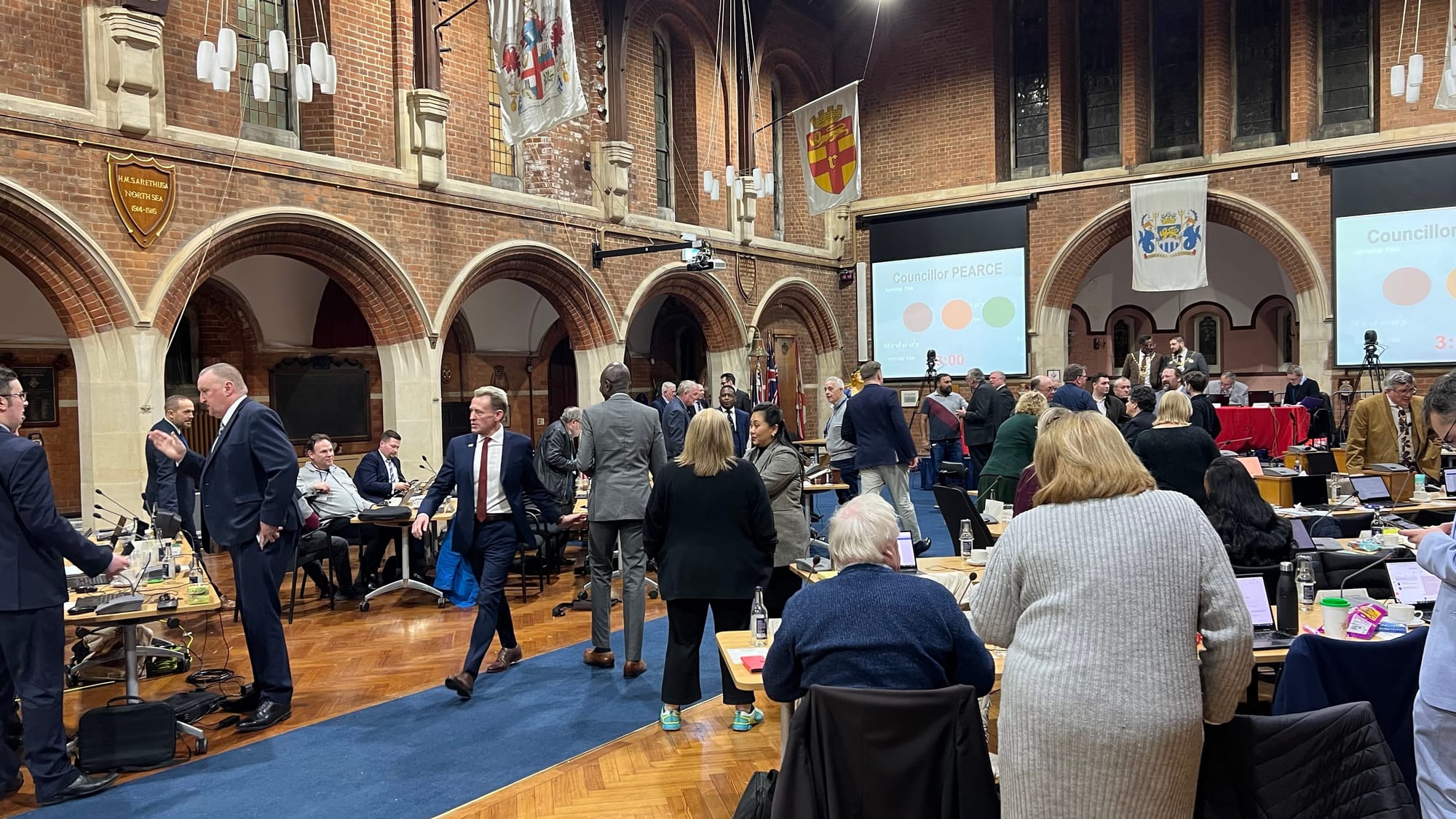 Cllr Maple (Lab) says that if the motion is seconded, he will seek a recorded vote on it so it is clear how everyone voted, suggesting abstention is the only legally safe route. But things aren’t so simple, as Cllr Perfect (Con) raises. If the majority abstains, the motion could be passed with few votes in favour. The legal officer responds that he will have to determine whether the council has acted unlawfully and put together a report for the next meeting if that has been the case. Mayor Marian Nestorov (Lab) proposes adjourning the meeting for a period so more legal advice can be gathered. Cllr Michael Pearce (IndGroup) calls this an ‘affront to democracy’ and attempts to second the motion regardless, as the Mayor adjourns the meeting.