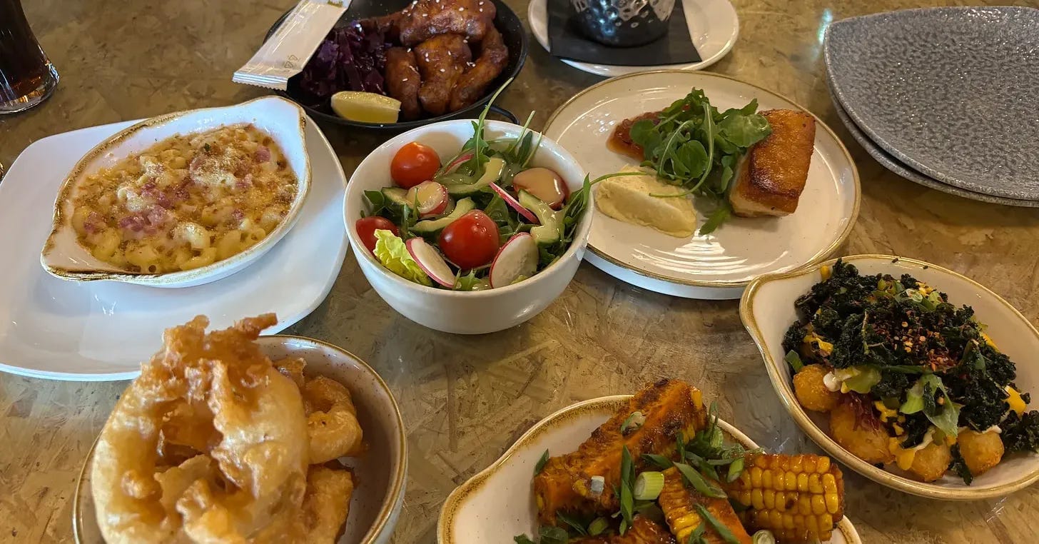 We selected various options from the small plates and sides menus to share. This included hash brown potato puffs with salt beef and topped with crispy cavolo nero, sticky chipotle & lemon corn ribs, slow cooked honey glazed pork belly with a spiced apple chutney fennel and celeriac remoulade, crispy buttermilk chicken wings with sesame Asian slaw in a sticky BBQ wing sauce, Whitstable Bay beer battered onion rings, garden salad in a lemon and mustard dressing, a bowl of house chips, bacon mac & cheese topped with a herb parmesan crumb. Before any judgment, I must stress again that these were small plates to share.