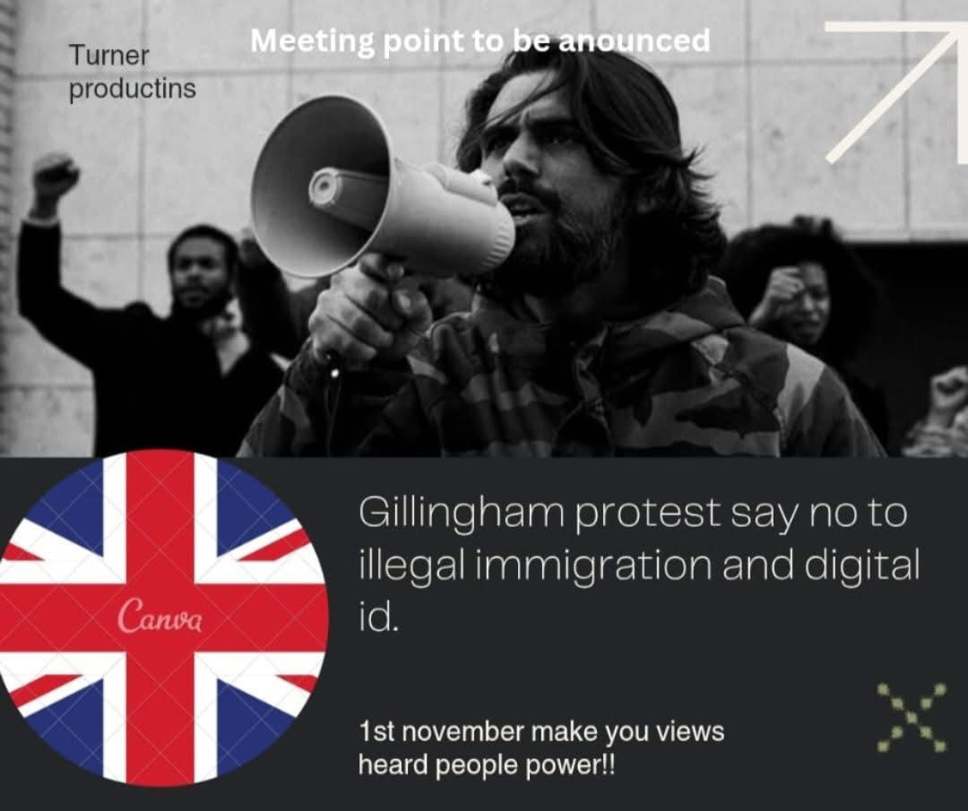 The slogans shift from ‘stop the boats’ to digital ID conspiracy theories to general complaints about Medway. The design work is amateur, but the underlying message is consistent: migrants presented as a problem, councils accused of betrayal, and calls for confrontation dressed up as community spirit.