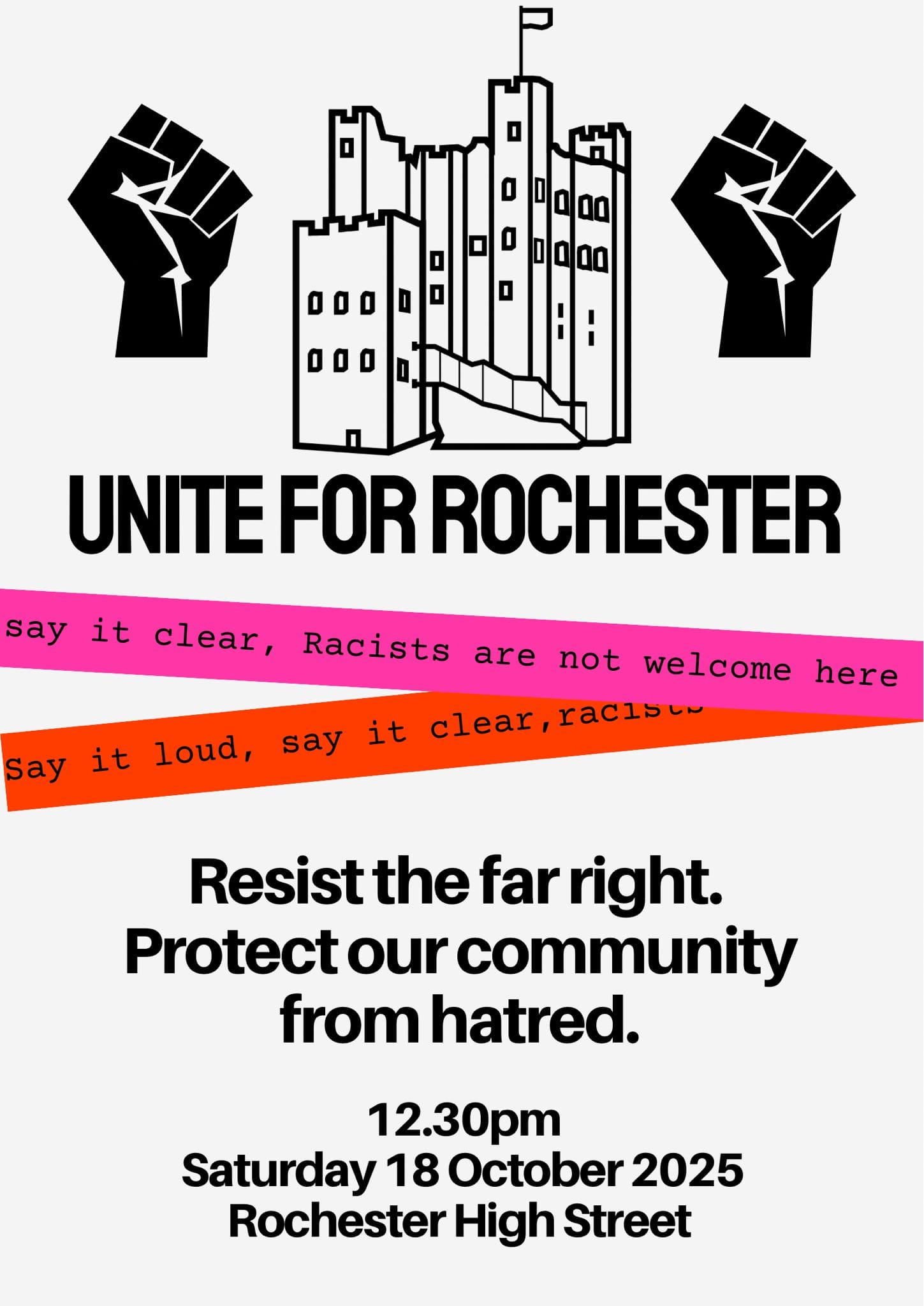 A counter-protest is already planned. Posters advertising a ‘Unite for Rochester’ event propose meeting on the High Street half an hour before the UKIP start time with the call to resist the far right and defend the community.