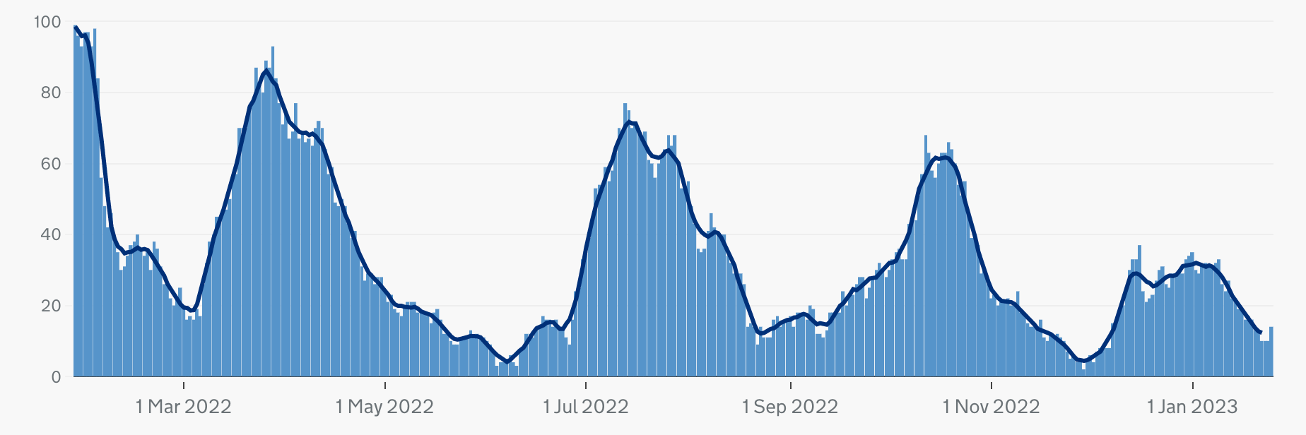 Hospitalisations: There are currently 14 patients being treated for covid in Medway Hospital, with 1 of them on a ventilator. This is down 18% on last week.