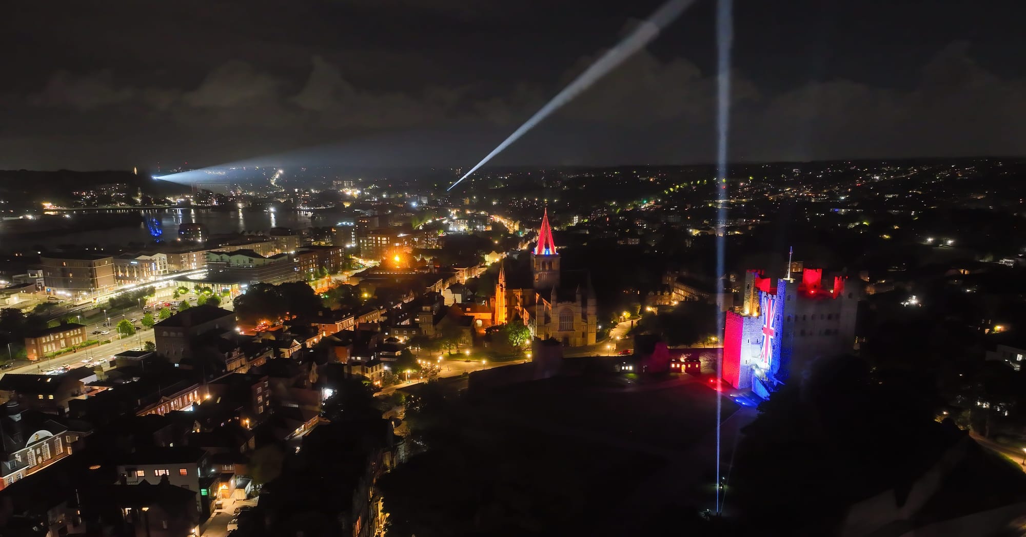 Despite the advance warning of what would happen, there was no shortage of posts in Facebook groups asking what the weird lights in the sky were. This photo above shows the scene across Rochester, with the castle and cathedral lit up while searchlights scan the skies. Definitely one of the more unique Medway displays in some time.