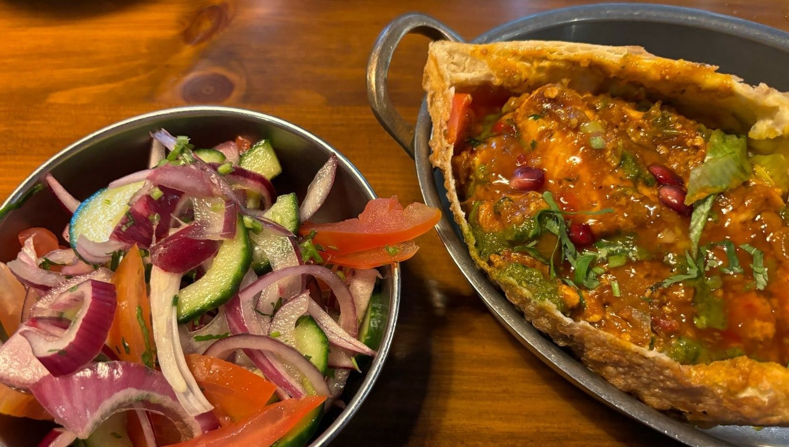 They have a separate lunch menu from their dinner offering, and poppadoms were ordered to start. The poppadoms were fresh and served with an excellent mango chutney. Mains was a chicken ‘Frankie boat’, a delicious bread opened like a pocket and packed with chicken and salad. It is a taste sensation packing a little spice, but the flavours complement each other so well, and the bread works as a delivery tool for the chicken or eaten on its own. As a bonus, we got some mango lassi and recommend you do too.