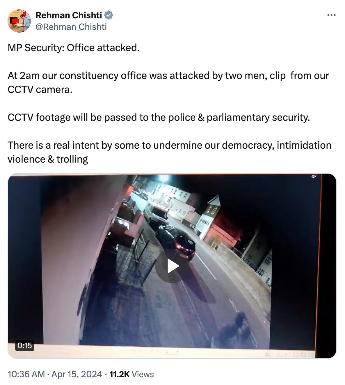 Chishti described this as a ‘real intent by some to undermine our democracy, intimidation violence & trolling’.