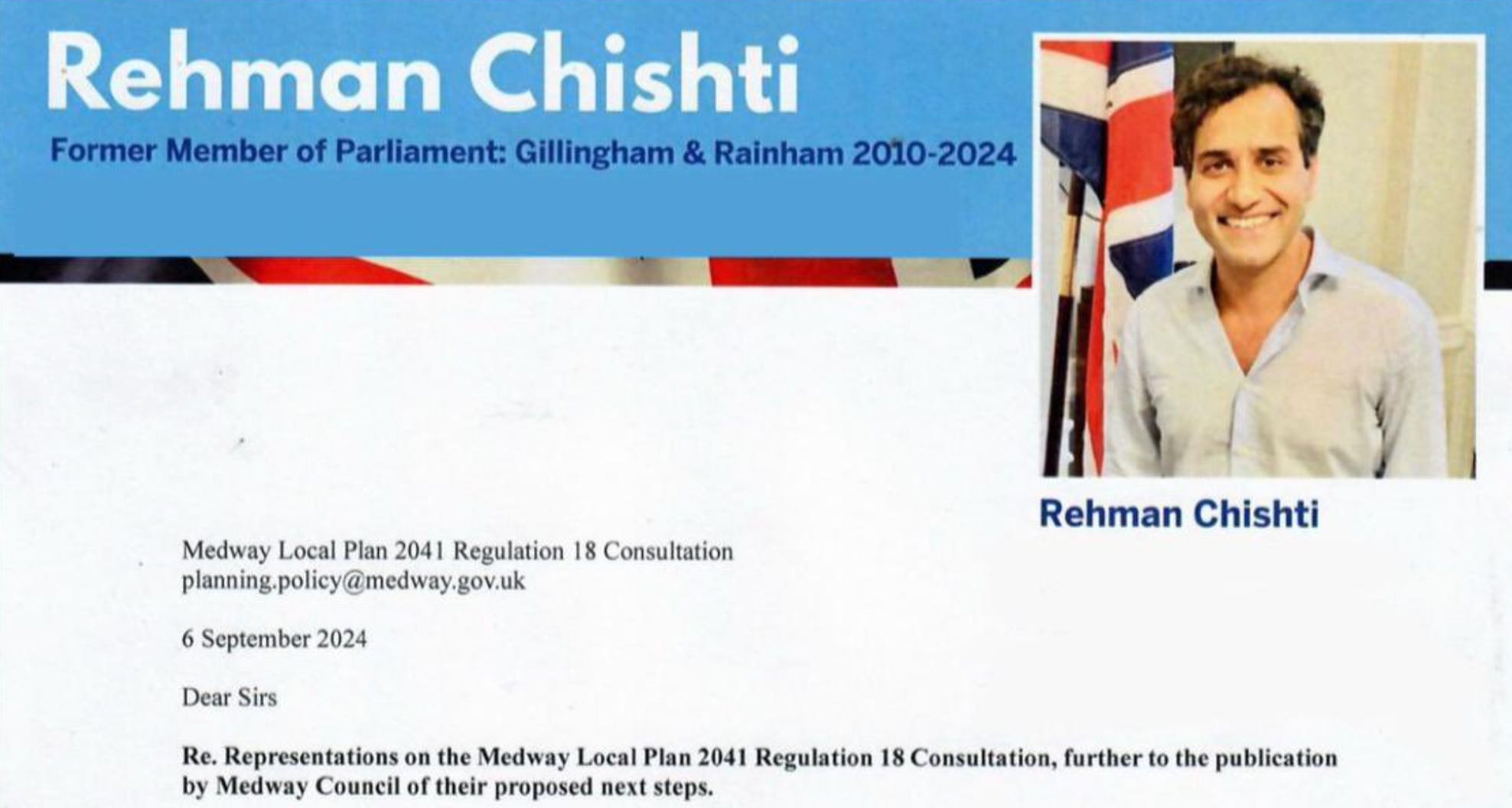 We didn’t expect to be writing about Rehman Chishti for a while. Still, the former MP for Gillingham and Rainham popped back onto our radar this week with a strange response to the aforementioned Local Plan consultation.