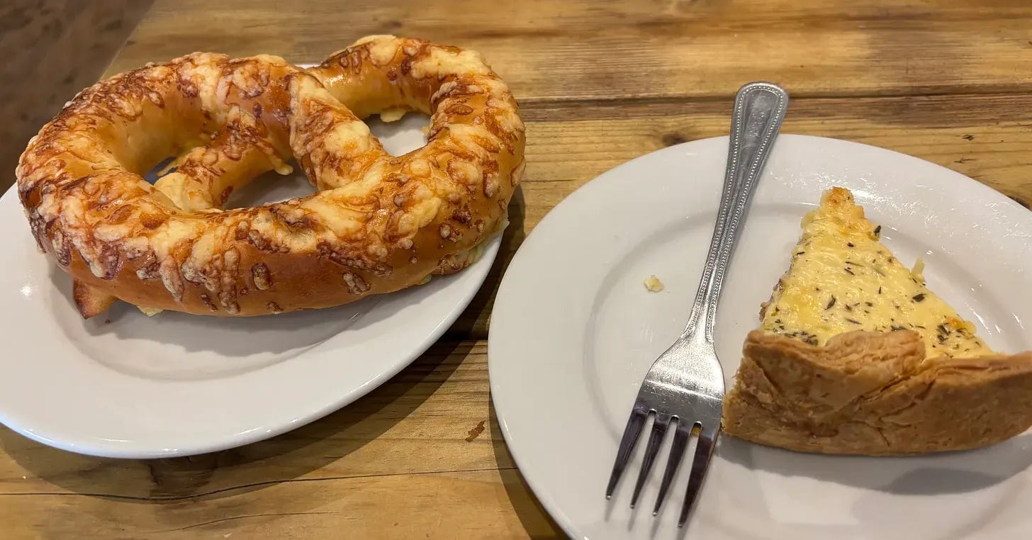 I ordered a range of products to sample, including a cheese and onion quiche, a cheese pretzel and a serrano ham and cheese toastie. The quiche was served with no side salad getting in the way, and the pretzel was the size of the plate. The toastie took a little time to get to us, so thankfully, I had my ‘snacks’ to see me through.