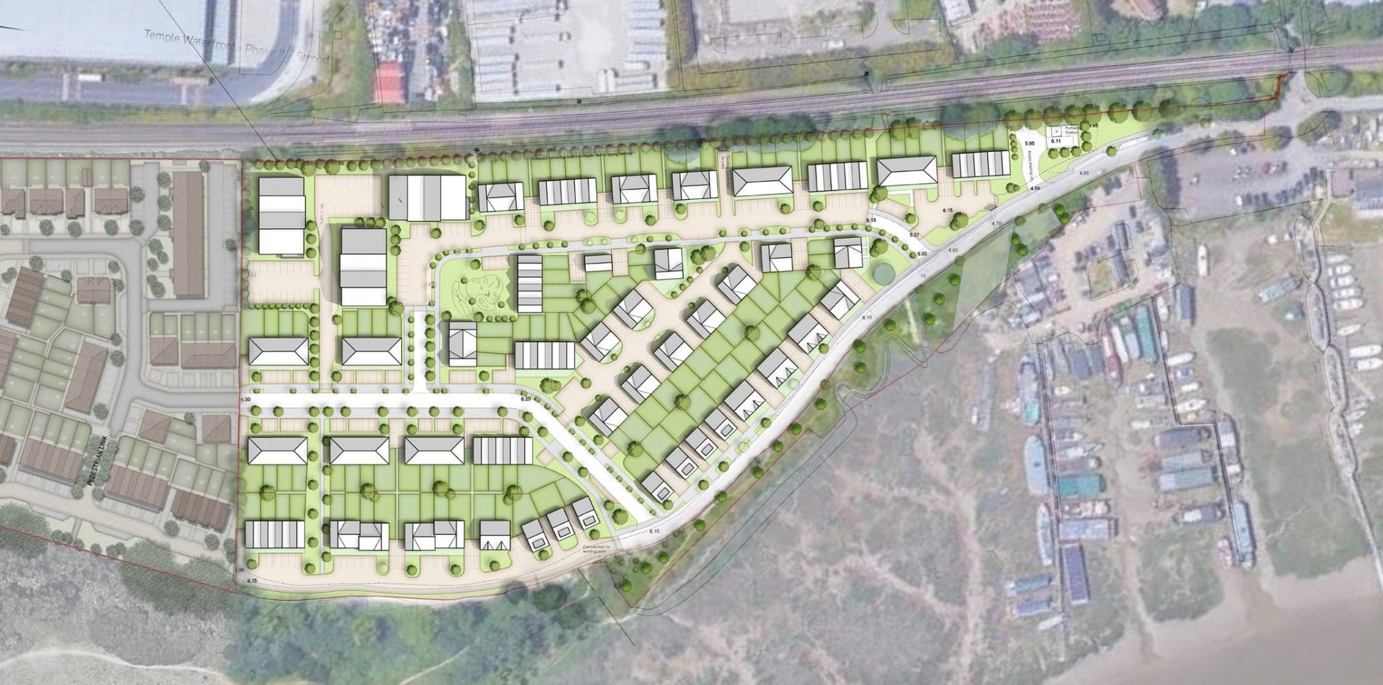 Temple Waterfront is currently undergoing extensive development. This is the area that broadly runs from the Medway Valley Park complex to the industrial heart of Strood. The aim is to eventually create a new residential area, as well as a significant new park. Initial phases are already underway, and this new plan aims to round off the area.