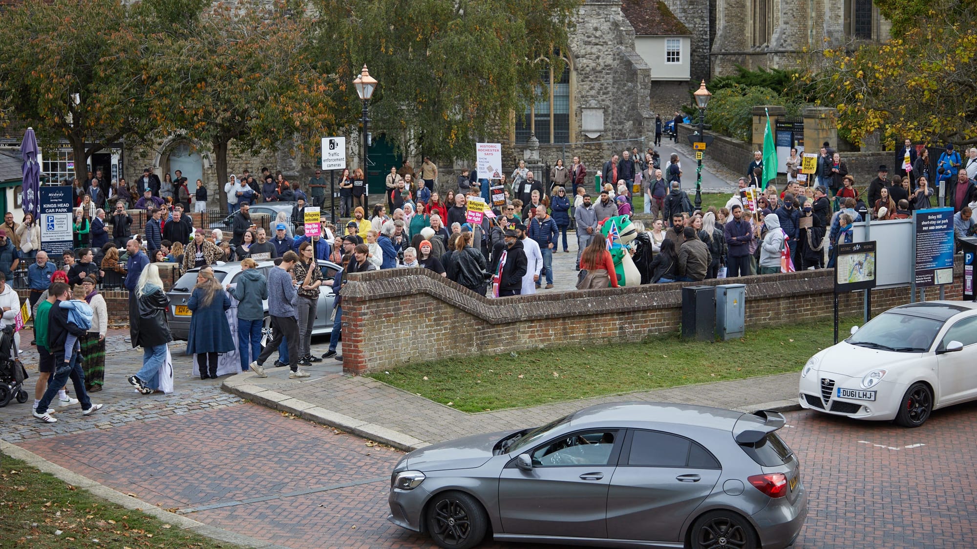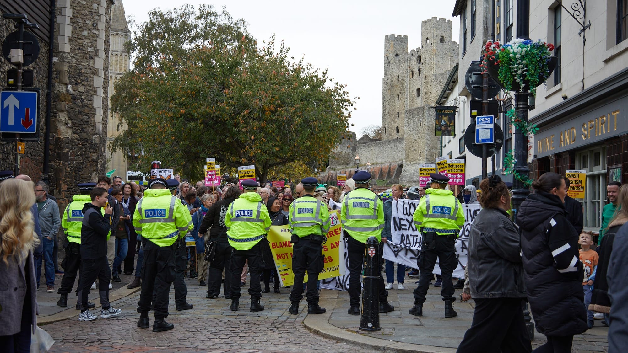 There had been tension, but no violence, and for most of the day the loudest sound in Rochester was the chants being led by counter-protestors with a megaphone. Shoppers continued to move through the High Street, occasionally stopping to watch before carrying on.