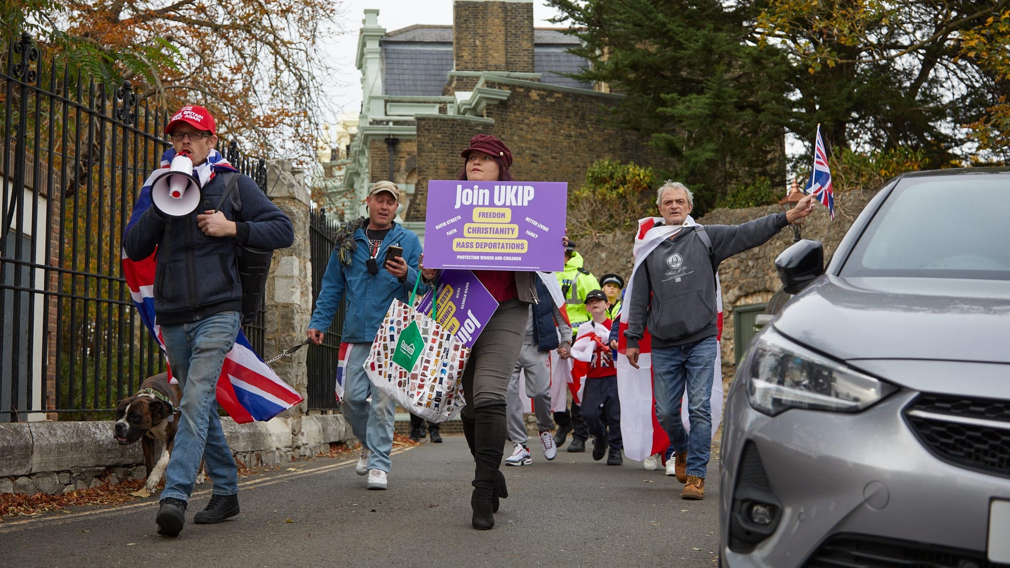 It began quietly. Just after lunchtime on Saturday, a small group gathered by the coach station in Rochester, carrying purple UKIP placards and English and Union flags. There were so few of them that for a while it wasn’t clear if the event was actually happening. No sign of party leader Nick Tenconi, no crowd, no chants. Just organiser Roger Hogg, councillor Amelia Randall, a handful of adults, and a few children swaddled in flags.