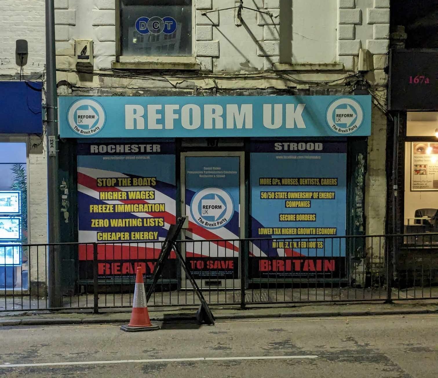 The shop windows are being used to campaign for Reform UK, however, it is understood it has no involvement in the premises itself. The building owner Bill Khatkar told KentOnline he was leasing the property to a business but sold the advertising space outside separately.