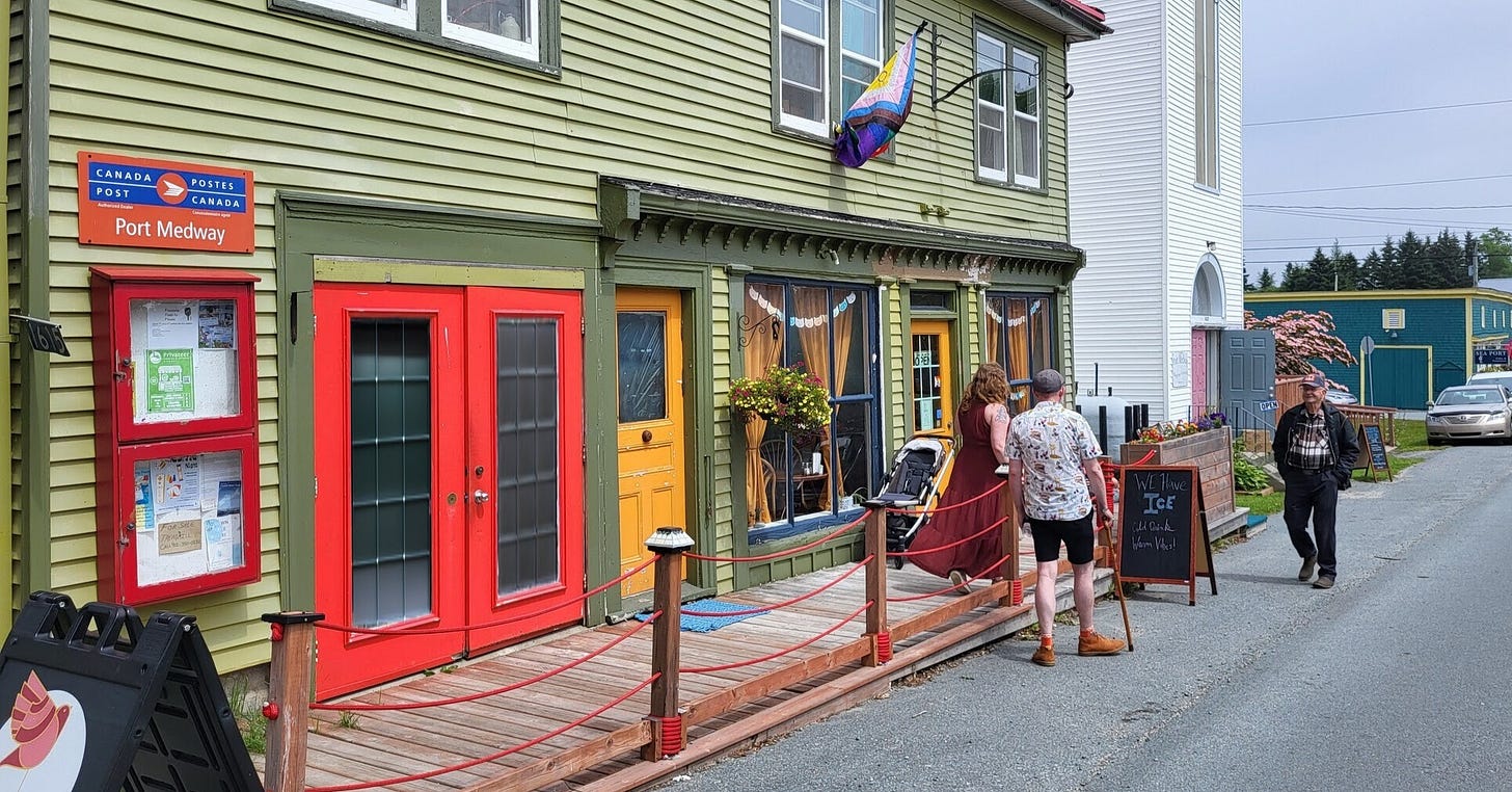 Until an email arrived out of the blue from Audra, who had recently moved there and somehow stumbled across my old post. Most excitingly, she and her husband, Haritha, had taken on the former Port Grocer building and brought it back to life. It’s now Rosefinch Mercantile: part shop, part cafe, part place to stay, part community post office. They’ve also launched a Visit Port Medway site to showcase their corner of Nova Scotia. They seem like very cool people doing a very cool thing in a place well off the beaten track.
