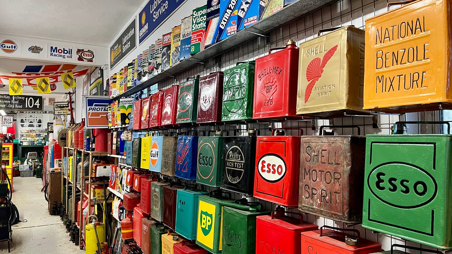 Trevor worked in the motor trade for years, so perhaps his choice of collection isn’t too surprising. His enthusiasm for what he does is infectious, though. He has built a collection over decades, primarily by picking up what the rest of us would throw away. An oil bottle or an old petrol can might not seem particularly unique at the time, but Trevor sees his role as preserving what won’t be around in the future. He points toward some modern plastic oil bottles and notes, “One day, it will all be rare”.