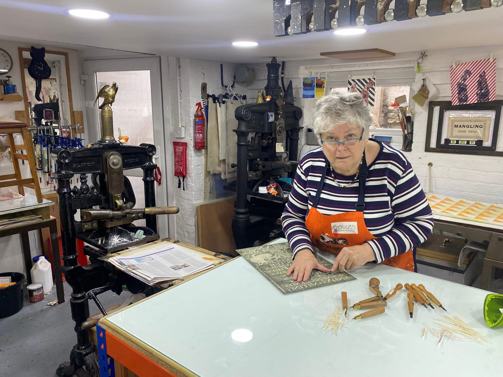 Heather Haythornthwaite is an experienced printmaker, exhibiting artist and art teacher. She owns and runs The Hazelnut Press from her studio in Rochester, Kent. Steven met Heather in her printing press workshop to discuss what brought her to Medway, why she got into printing, the council’s treatment of trees, and more.