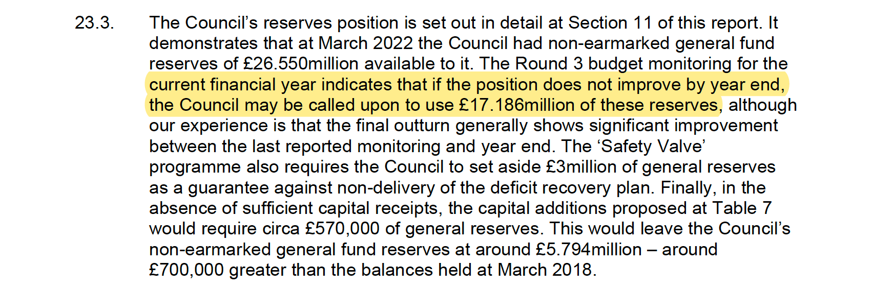All of which might sound rather positive given the reserve position set out above. Sure, spending £2m from the reserves next year isn’t great, but it hardly breaks the bank either.