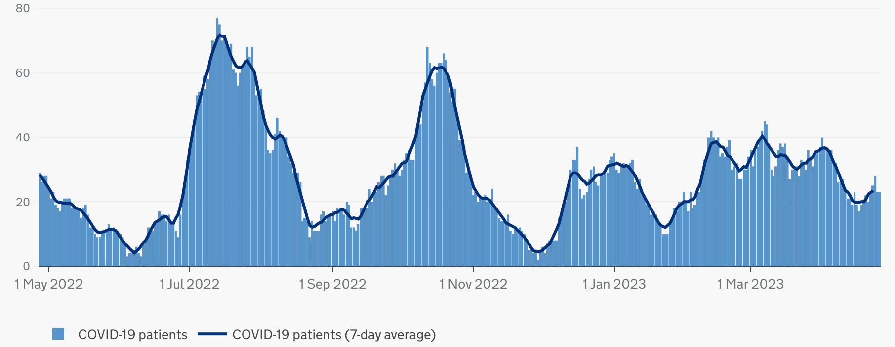 Hospitalisations: There are currently 23 patients being treated for covid in Medway Hospital, with none of them on a ventilator. This is up 15% from last week.