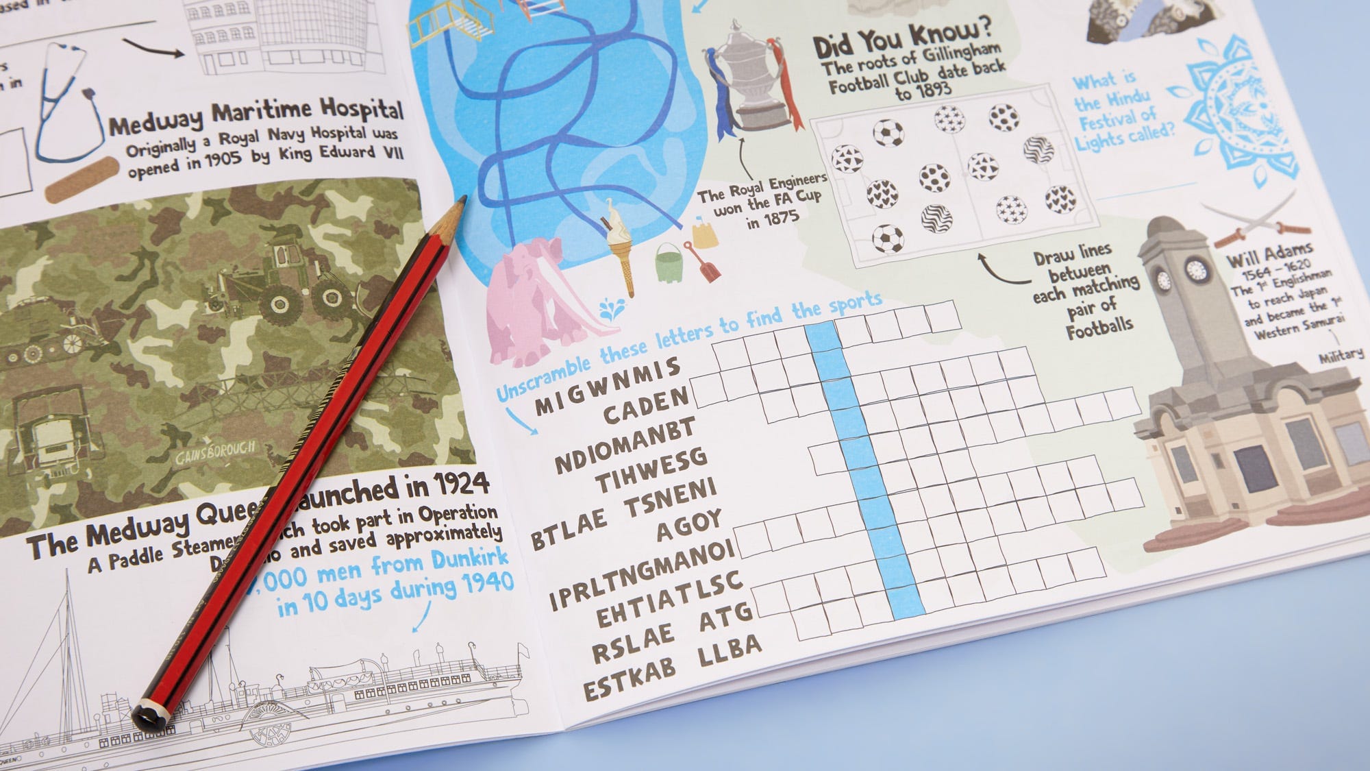 The Medway Activity Book is a new children’s activity book by local illustrator Designed by Esther, celebrating Medway’s heritage with fun, bright illustrations and games.