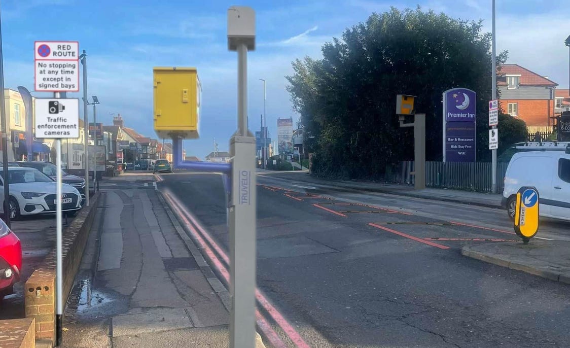 This week, a new petition was launched to oppose red routes across all of Medway, with campaigners targeting Rainham residents with bizarre images like the one above showing massive (and weirdly low) cameras and strange red hatching that doesn’t exist anywhere. So far, with less than a week left to sign, the petition has been signed by 159 people or 0.06% of Medway’s population. A true populist uprising indeed.