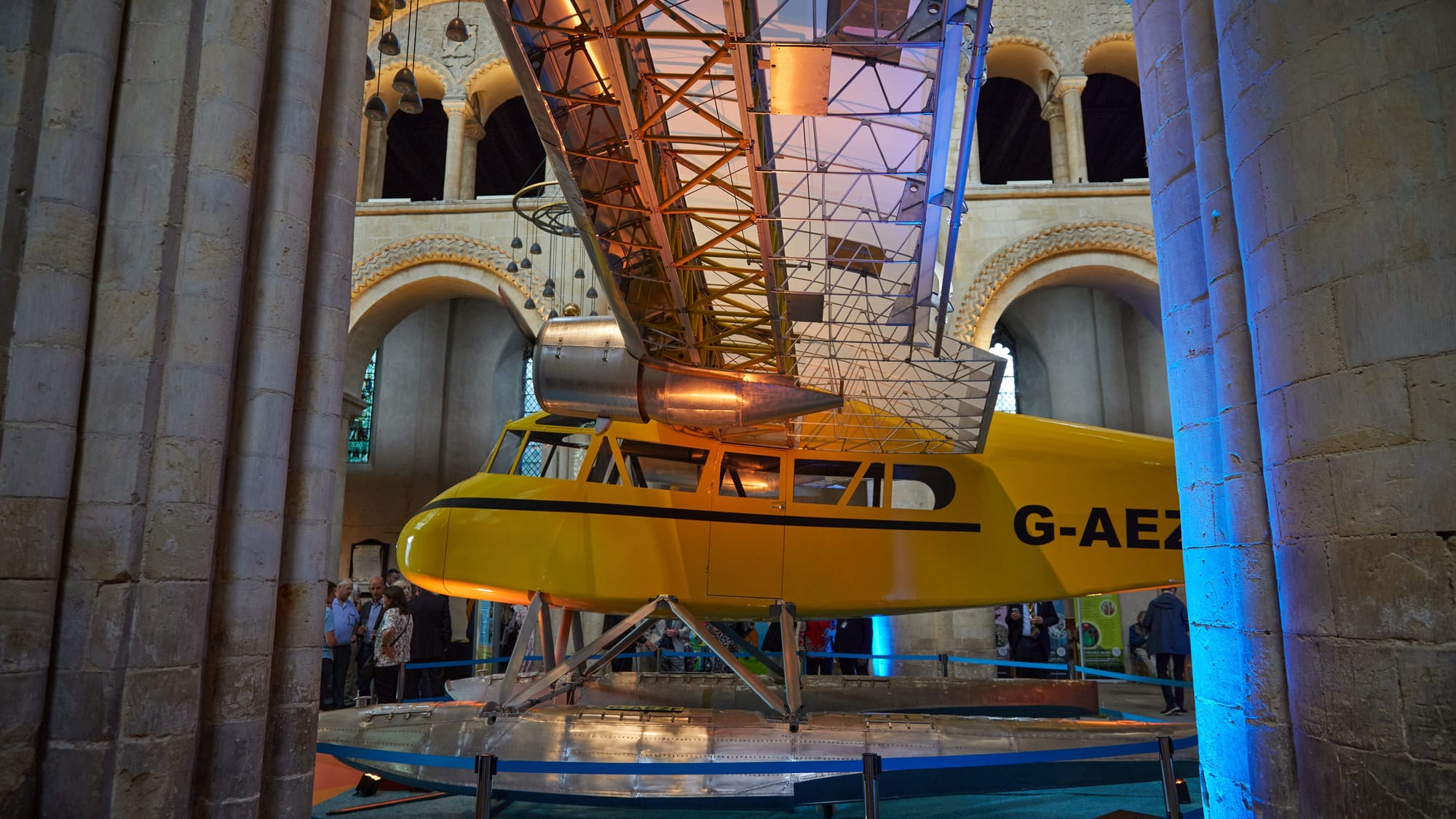 Restored floatplane goes on display inside cathedral