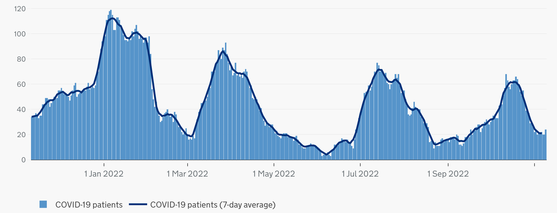 Hospitalisations: There are currently 24 patients being treated for covid in Medway Hospital, with 1 of them on a ventilator. This is up 4% from last week.