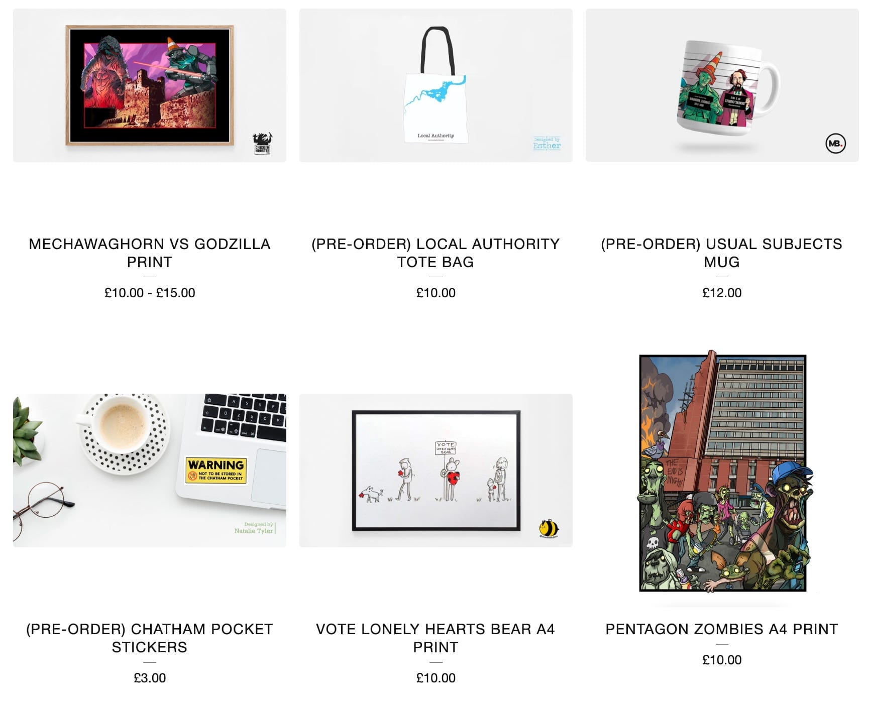 All of our prints are currently available, while some of the bigger items are scheduled to arrive in July. All profits raised from merch go directly back into improving our journalism, so you can feel like you’re doing something good while also buying a poster of MechaWaghorn facing down Godzilla at Rochester Castle.