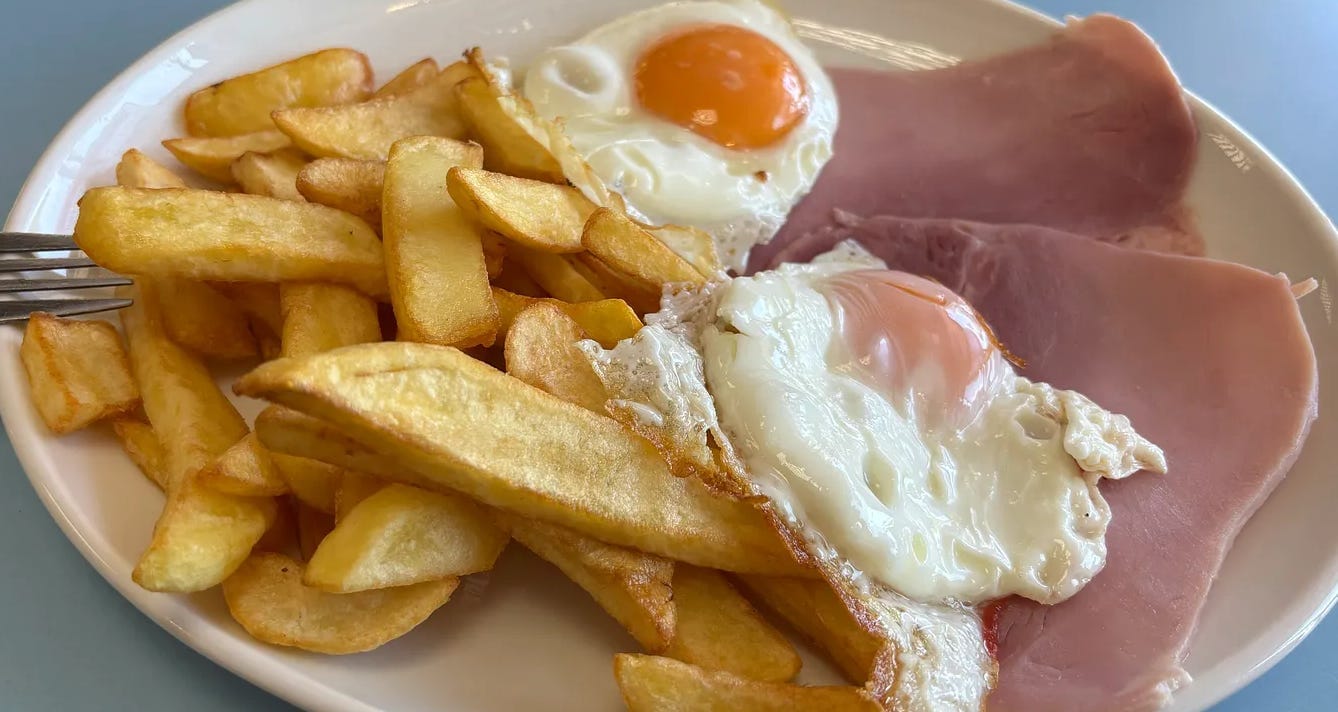 The menu is short and sweet, with most items some variation of pork, egg, and carbohydrate. I went for a classic ham, egg, and chips. The staff were happy to swap my grilled tomatoes for an extra egg, cheerfully letting us know the eggs were from a local farm. The food prices were extraordinarily reasonable, though offset by the relatively expensive drinks. The food arrived promptly, and while it was simple, it was delicious. The local eggs had a flavourful, rich orange yolk. The ham was generously portioned, and the chips were a tasty treat when dipped into the yolks.