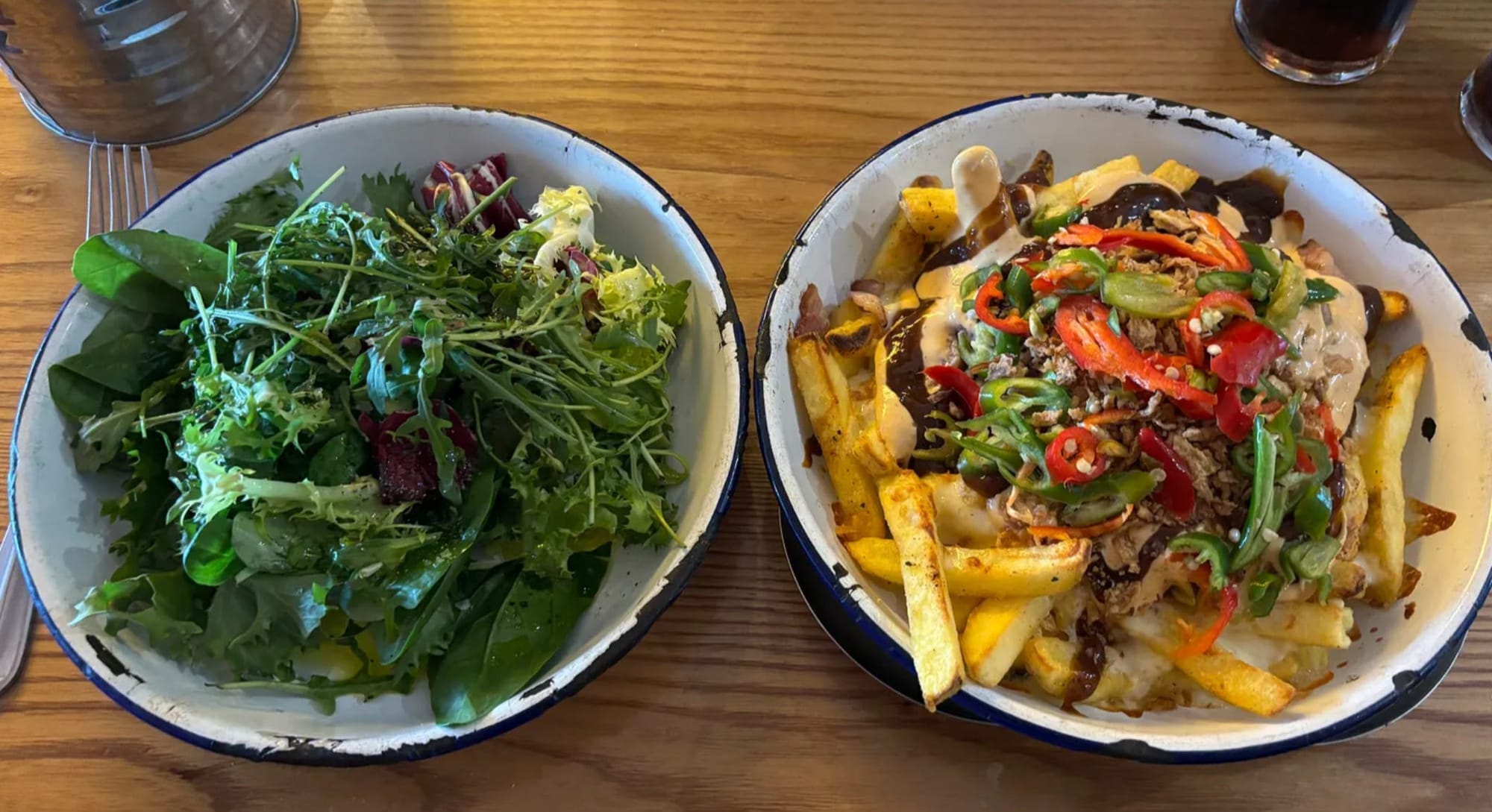 A large Coke was smaller than a pint and was not filled to the top. This is, of course, Totally Fine. I ordered the Mucky Swine loaded fries, which are spiced fries served with a layer of crispy bacon, cheddar cheese, and mozzarella on top, along with both the house burger sauce and BBQ sauce. To balance this slightly, I also ordered a side of green leaf and herb salad, which, and many Medway eateries could learn from this, was served with a lemon oil dressing. The salad was simple but pleasant and went well with the generously portioned and tasty loaded fries. The layer is well placed, accompanies the fries well, and does not leave them soggy. Side note for the chicken wing fans out there: I would also recommend those. Ask for all the sauces.