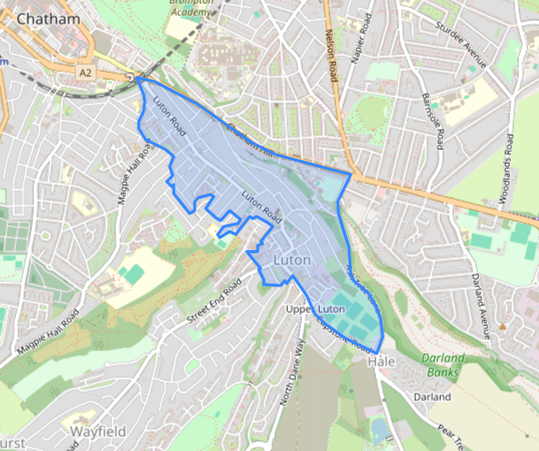 Luton is the least awkward of the three. On the map, it broadly looks like Luton as most Medway residents would understand it, running from Luton Arches through the heart of the neighbourhood and out towards the local centre at the eastern end. If one of the three areas can be described in simple shorthand without too much trouble, it is this one.