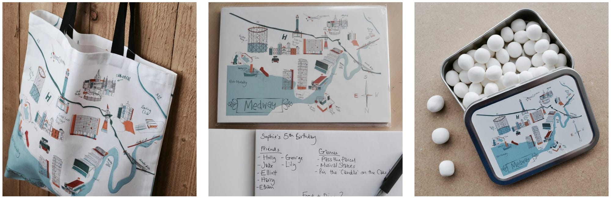 Designed by Esther make a range of Medway products, from tote bags to tins to notepads to prints. All of it is unique and stylish, highlighting recognisable locations from our towns at very reasonable prices.