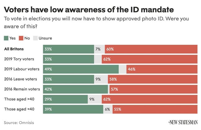 What reason could there be for forcing this legislation through parliament? A cynic could point out that there was a clear age split in party allegiance in the 2019 elections, with 67% of votes for the Conservatives coming from people aged 70+, and Labour votes coming from significantly lower age groups. The Resolution Foundation also highlights that low-income potential voters are six times less likely to have a photo ID than their wealthier counterparts.