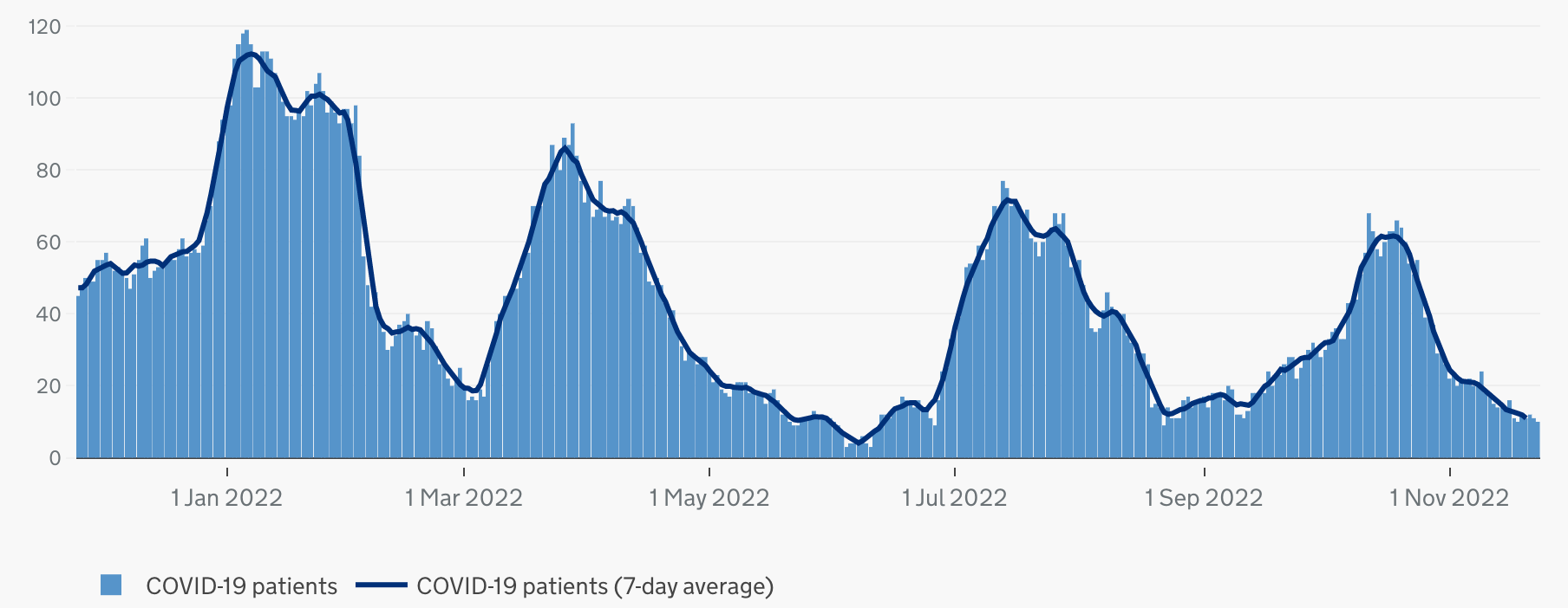 Hospitalisations: There are currently 10 patients being treated for covid in Medway Hospital, with 1 of them on a ventilator. This is down 38% on last week.