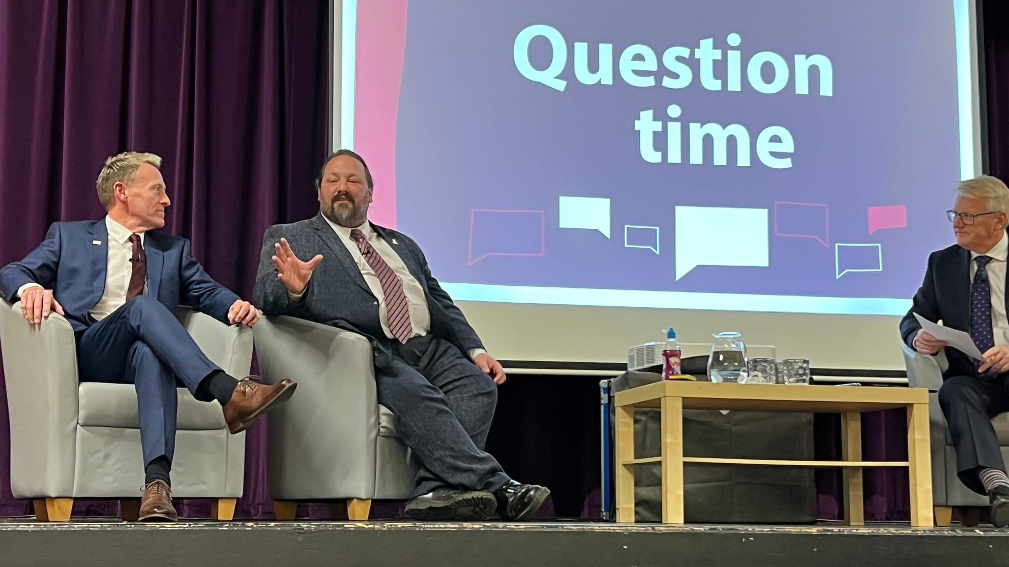 Maple and Hicks were surprisingly open and happy to tackle any issue thrown at them, and while written questions can be checked in advance, questions from the floor were delightfully unvetted. This led to a number of ‘more of a comment than a question’ interventions, some incredibly mixed offerings, such as when one questioner managed to ask about cars driving on pedestrianised streets, shop displays, staff being abused in Asda (and only Asda), and also people using supermarkets as a cash and carry. Maple and Hicks attempted to tackle such questions in good humour and held their own well.